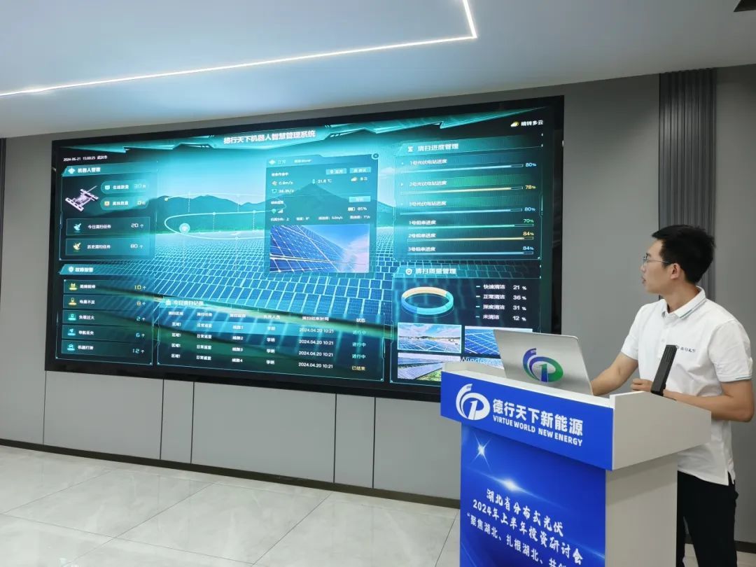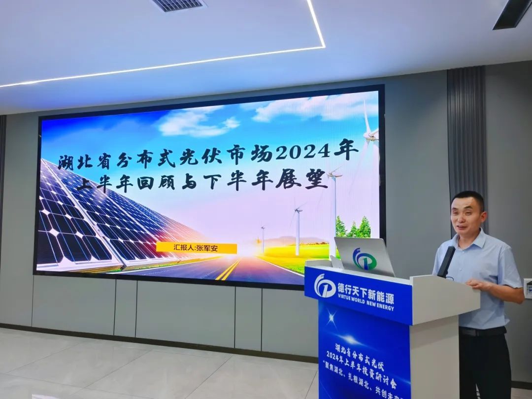 随著(zhe)全球能(néng)源需求的(de)不(bù)斷增長(cháng)和(hé)對(duì)環境可(kě)持續發展的(de)要(yào)求,太陽能(néng)光(g uāng)伏發電(diàn)作(zuò)為(wèi)清潔、可(kě)再生(shēng)能(néng)源的(de)代表,受到(dào)越來(lái)越多(duō)的(de)關注。為δ(wèi)了(le)推動光(guāng)伏産業(yè)鏈的(de)發展和(hé)促進湖(hú)北(běi)省企業(yè)間(jiān)的(de)交流合作(zuò)。6月₩(yuè)22日(rì)下(xià)午,由湖(hú)北(běi)省太陽能(néng)空(kōng)氣能(néng)行(xíng)業(yè)協會(huì)主辦,湖(hú)↓北(běi)德行(xíng)天下(xià)新能(néng)源科(kē)技(jì)有(yǒu)限公司承辦的(de)“湖(h€ú)北(běi)省分(fēn)布式光(guāng)伏2024年(nián)上(shàng)半年(nián)投資研討(tǎo)會(huì)”在德行(xíng)天≠下(xià)新能(néng)源總部大(dà)樓圓滿舉行(xíng)。本次論壇彙聚了(le)行(xíng)業( yè)協會(huì)、行(xíng)業(yè)專家(jiā)、光(guāng)伏企業(yè)、合作(zuò)夥伴,與會(huì)人(rén)員(yu₩án)近(jìn) 50人(rén)規模,大(dà)家(jiā)共同研討(tǎo)湖(hú)北(běi)省分>(fēn)布式光(guāng)伏的(de)發展與未來(lái)。